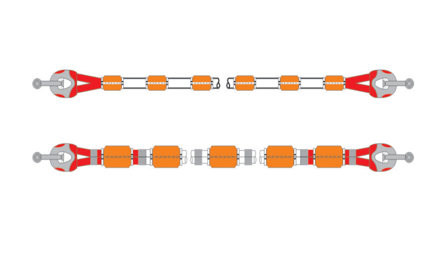 Polyamide double braid rope comprises 12 strands with a protective cover. This design provides high strength and good abrasion and is the first chocie for Single Point Moorings. The ropes can be supplied with heavy duty galvanised thimbles with Polyurethane protection on rope around thimble and splicing area. Buoyancy collars can be added to the ropes to make the ropes postiviely buoyant.