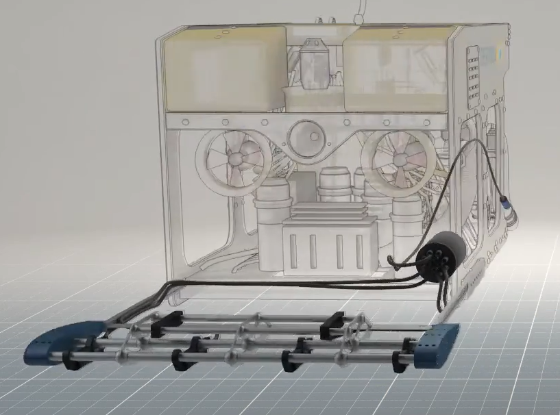 The multi-channel system MX3D UW is an ROV based magnetometer survey system to allocate and track objects and structures under water. The submersible measurement system is equipped with high-resolution three axis Fluxgate sensors FGM3D UW, sampled with up to 2,000 Hz.